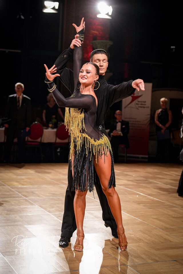 Den dritten Platz belegten Hanna Kalpakidis und Jan Goerling vom TSK Blau-Silber Berlin. Die Vorjahressieger Kamila Szalega und Dawid Debski vom polnischen Dance Club Zielona Góra mussten sich diesmal mit Platz vier zufriedengeben. Spannend wurde es im Kampf um die Plätze fünf und sechs. Luana Giersbeck undCedrik Heinrich aus Maintal lieferten sich mit Mariia Ashizheva und Erik Galajda vom TSC Excelsior Dresden ein enges Duell. Nach einem ausgeglichenen Auftakt setzte sich das sympathische Paar aus Hessen ab dem Tango knapp durch.