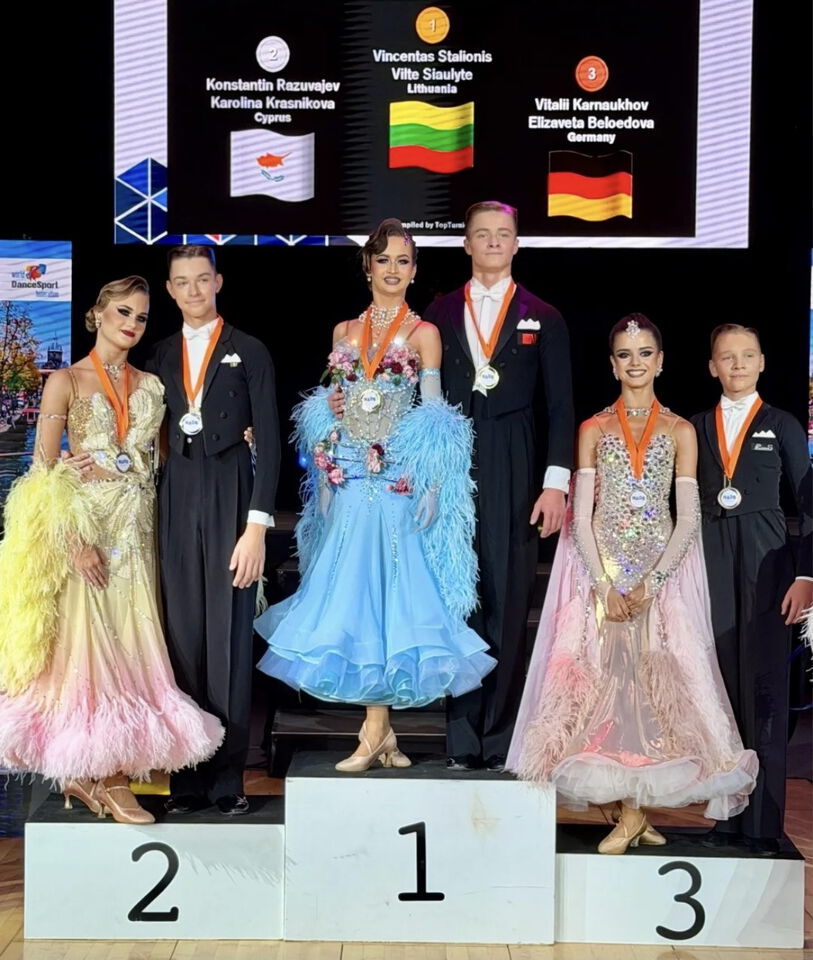 Bei den Holland Masters in Rotterdam, ein Wochenende zuvor, konnten unsere Paare ebenfalls glänzen. Besonders erfreulich war der Erfolg unseres Nachwuchspaares Vitalii Karnaukhov/Elizaveta Beloedova, die bei den Junioren II gleich zweimal das Finale erreichten. In den Standardtänzen ertanzten sie sich sogar einen hervorragenden 3. Platz und standen damit verdient auf dem Podium!